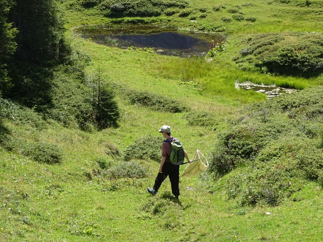 Die Region rund um Grindelwald ist ein Biodiversitätshotspot für Schmetterlinge. So kommt der Sudeten-Mohrenfalter (Erebia sudetica) in der Schweiz nur hier vom Hintisberg bis zur Grossen Scheidegg vor. Er steht auf der Roten Liste und gilt als verletzlich. Zu Beginn des dieses Jahrtausends stellte man fest, dass sich der Sudeten-Mohrenfalter und seine nah verwandte Art, der Kleine Mohrenfalter (Erebia melampus), geografisch ausschliessen. Doch vor etwa zwei Jahren zeigte sich, dass sich der Kleine Mohrenfalter, vermutlich aufgrund des Klimawandels, weiter nach oben bis zur Grossen Scheidegg ausgebreitet hat. Mit Hilfe moderner genomischer Analysen untersuchen wir nun, was passiert, wenn sich diese beiden Arten begegnen: Kommt es zu Genfluss und einer Vermischung der Arten? Oder verdrängt eine Art die andere? Die aus dem Projekt gewonnenen Erkenntnisse helfen uns, gemeinsam mit dem Kanton Bern gezielte Schutzmassnahmen für den Sudeten-Mohrenfalter zu entwickeln.